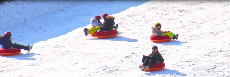 눈썰매장은 40미터 눈슬로프와 100미터 아이스슬로프가 준비되어 있어 짜릿한 눈썰매를 즐길 수 있습니다.