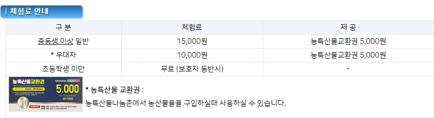 우대자는 아래와 같으며 체험료는 10,000원입니다.