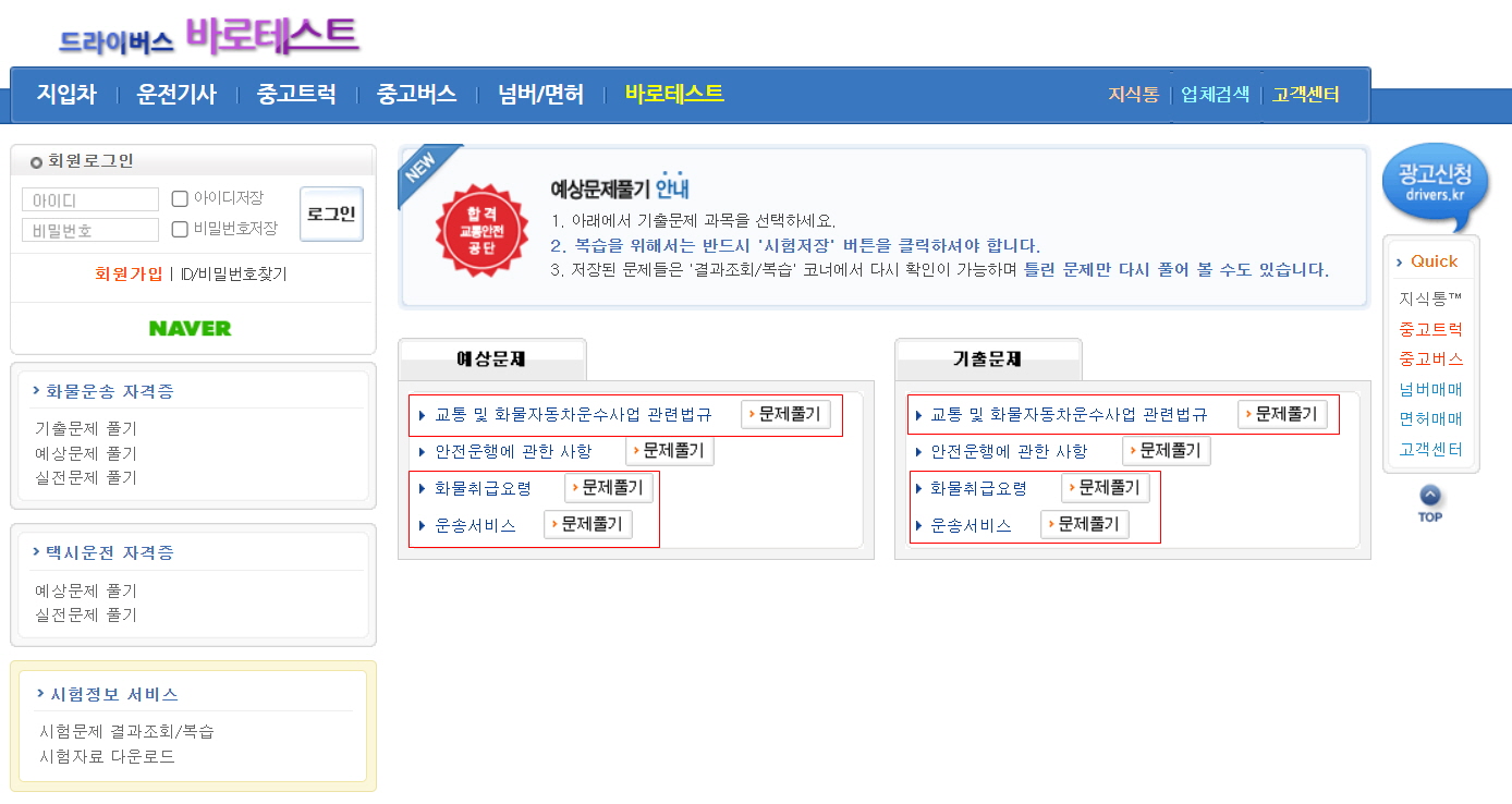 기출문제는 직업운전자 포털사이트인 드라이버스에서 찾아 보실 수 있습니다.