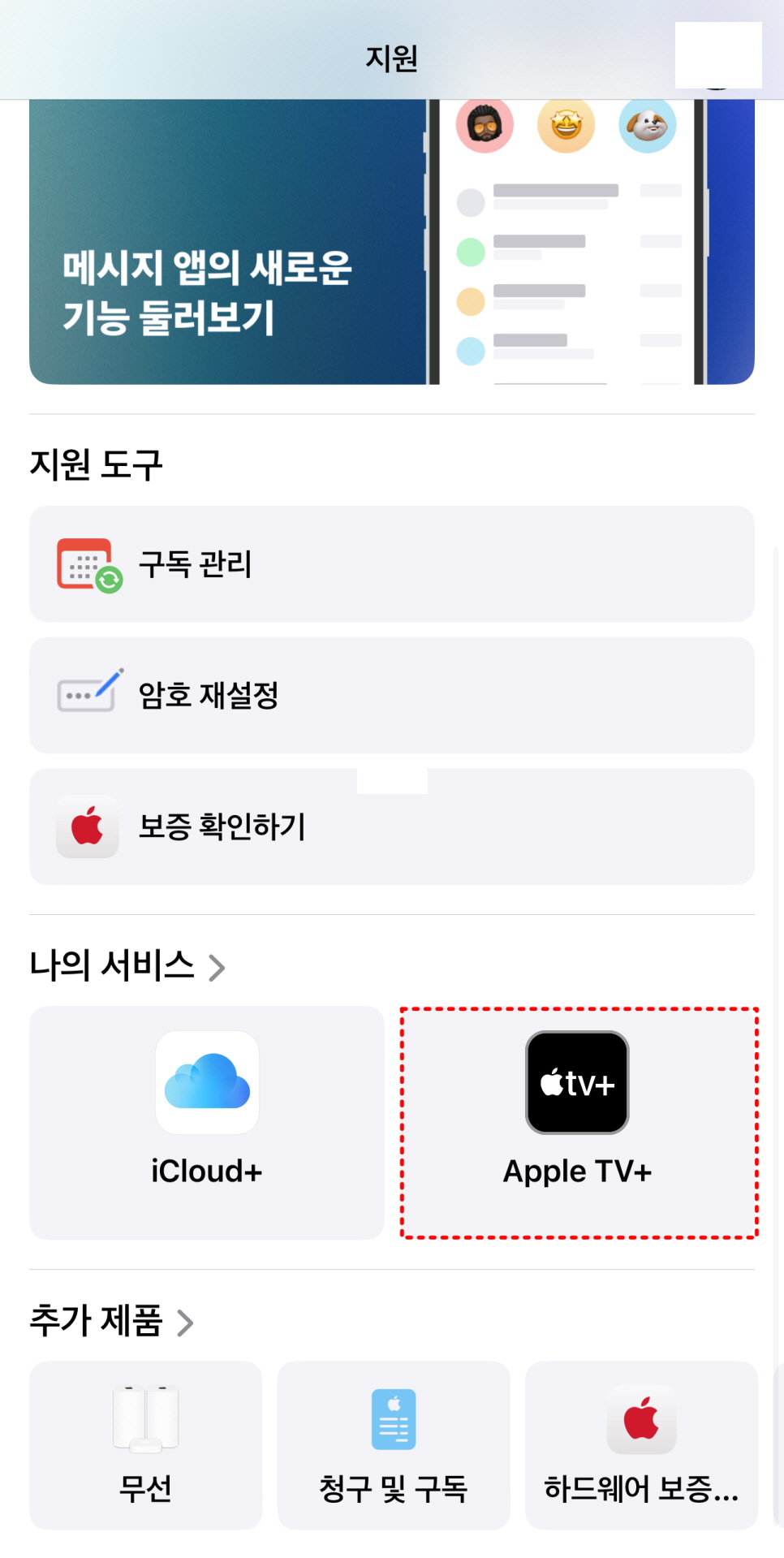구독 중인 항목 중에서 애플 TV+(Apple TV+)를 선택한 후, 다음 화면 하단에 있는 '구독 취소'를 눌러줍니다.
