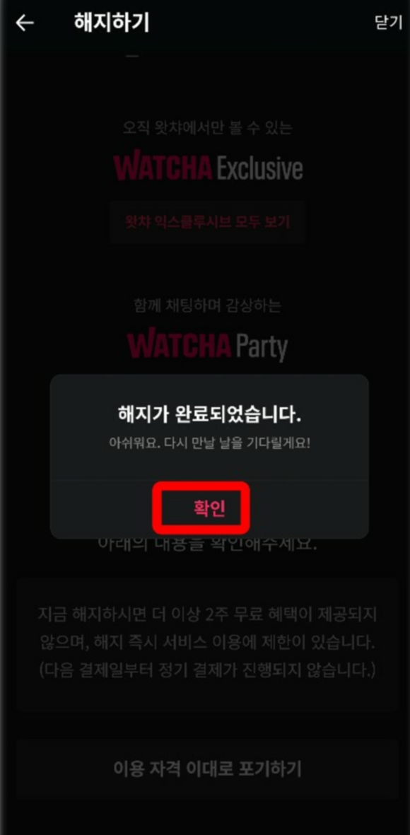 무료체험만 하기를 원하거나 더 이상 왓챠 서비스를 이용하기 싫을 때에는 손쉽게 언제라도 해지할 수 있습니다.