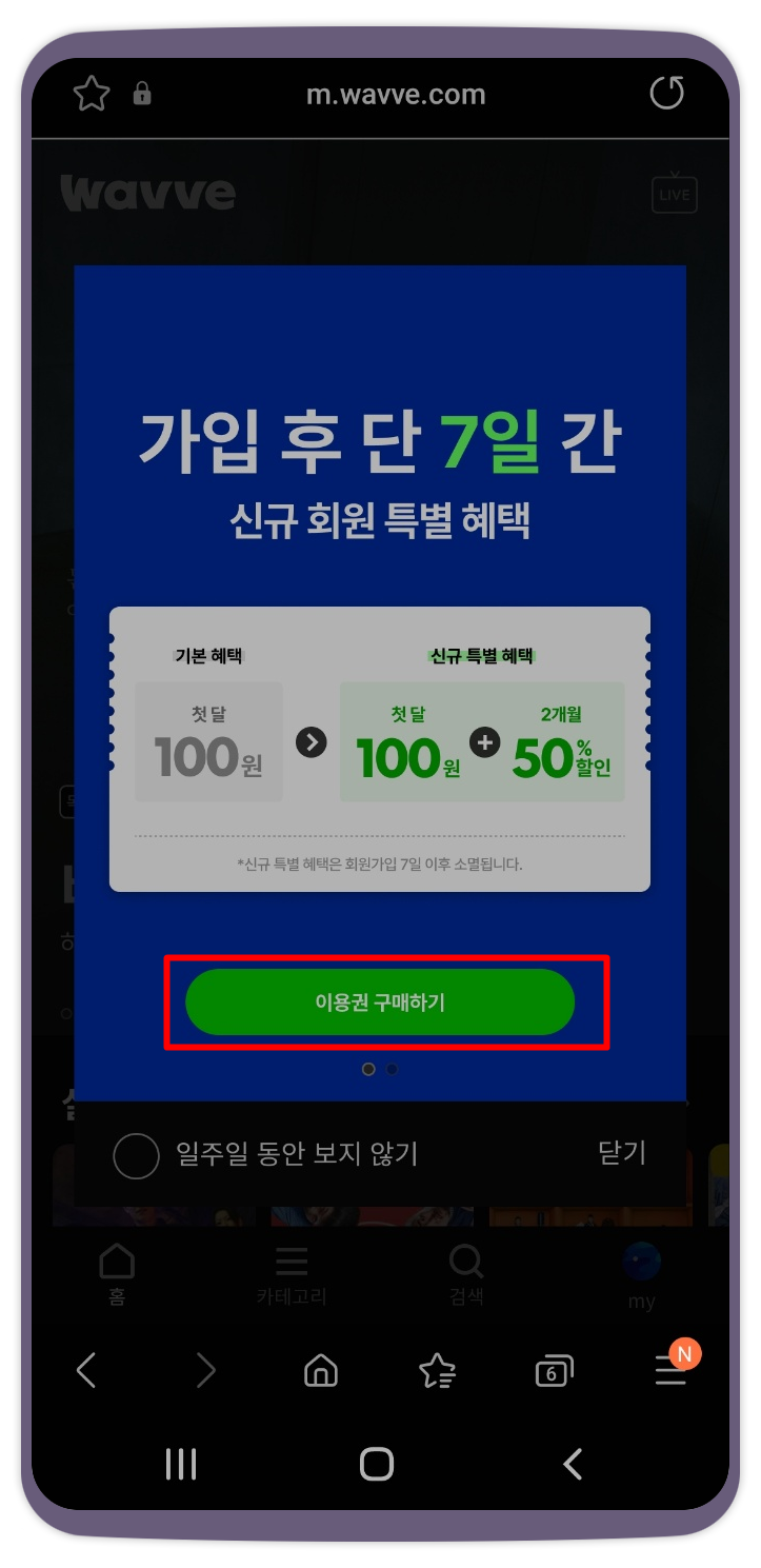 웨이브 첫달 100원 무료가입 방법