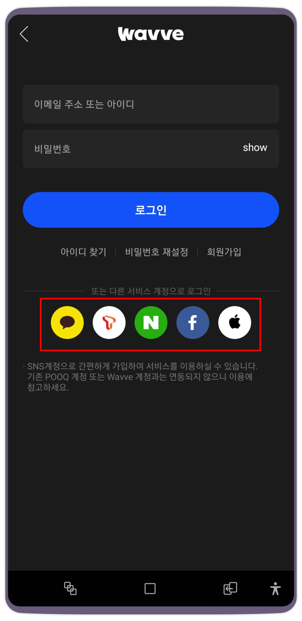 먼저, 안드로이드용 또는 아이폰용 웨이브 앱을 검색하신 후 다운로드하여 설치하셔야 합니다.