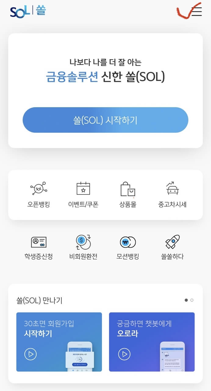 1) 신한은행은 모바일 어플로만 신청이 가능합니다. 아래 링크를 통해 신한은행 어플에 접속합니다.