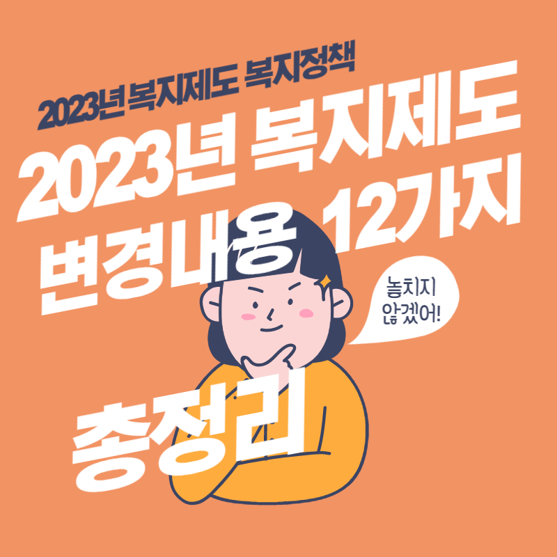 이상으로 '2023년 복지제도 복지정책 변경내용 변경사항 12가지 총정리'에 대해 자세히 알아보았습니다.
