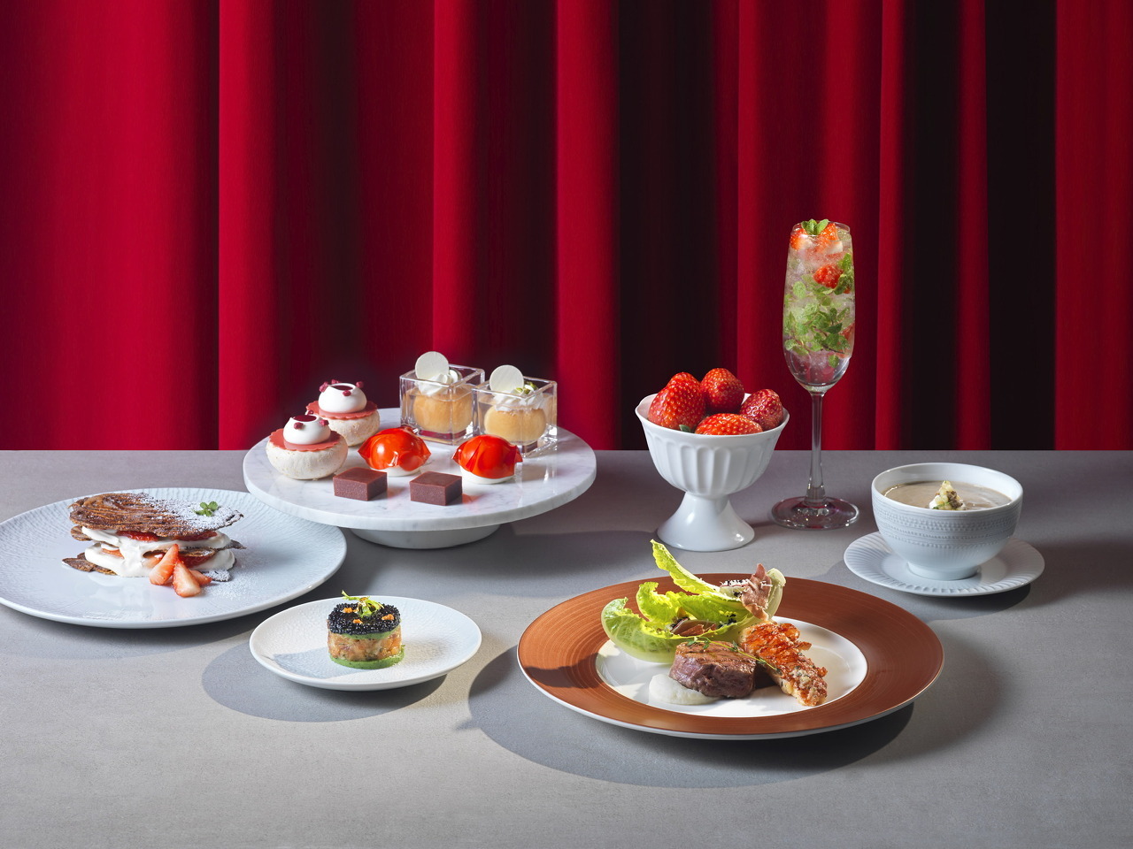브런치 코스 구성은 웰컴 드링크부터 캐비아를 올린 훈제 연어 티안, 트러플 버섯 수프로 구성된 애피타이저, 푸아그라 소스를 곁들인 한우 소고기 안심과 랍스터 구이로 구성한 서프&터프 순서로 진행됩니다. 마지막으로 수석 페이스트리 셰프 에릭 칼라보케가 선보이는 딸기 디저트가 제공됩니다.
