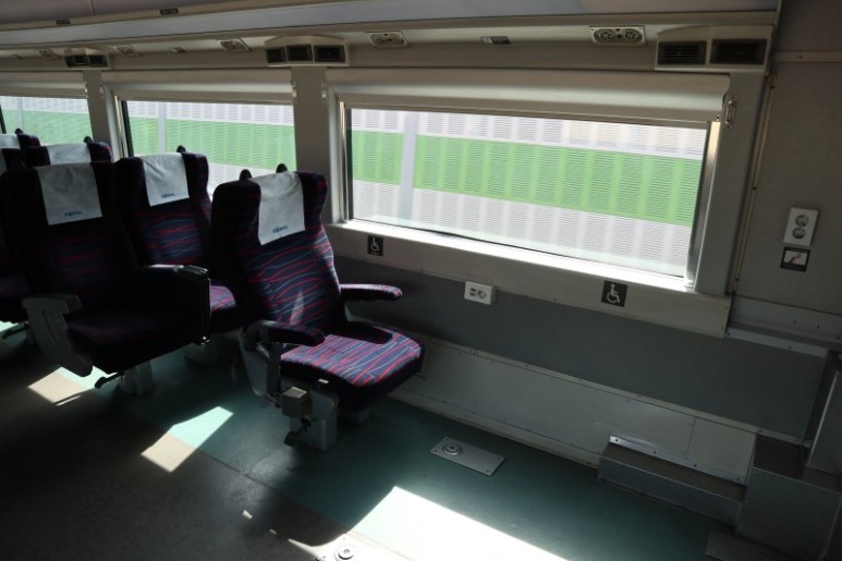 ITX-새마을호의 명당자리는 3호차의 휠체어석 바로 다음 자리입니다. 앞에 휠체어를 위한 공간이 뚫려 있어서 개방감이 좋다는 장점이 있습니다.