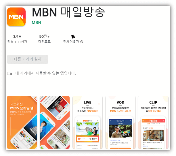 TV와 홈페이지 말고도 스마트폰에 MBN 매일방송 앱을 설치하시면 언제 어디서나 방송을 볼 수 있어서 아주 편리하답니다. MBN 매일방송 앱을 실행하시면 원하시는 방송의 본방사수를 무료로 하실 수 있습니다.
