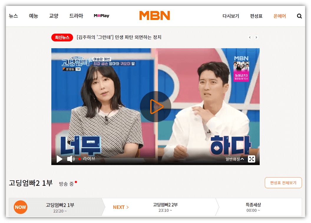 MBN 실시간 온에어 예능 드라마 뉴스 무료로 보는 법