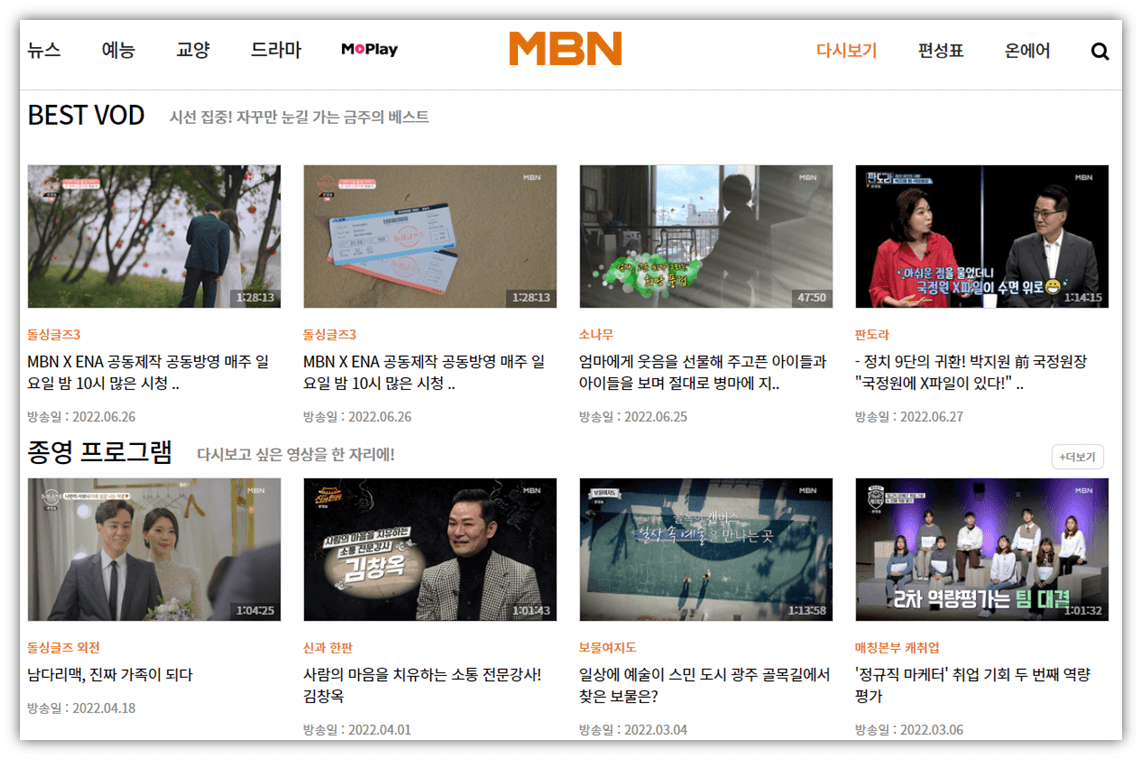 MBN 다시보기(재방송, VOD)