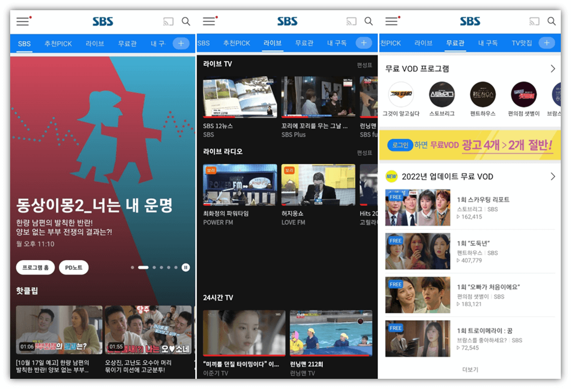 SBS는 대한민국의 지상파 방송사로서 태영그룹 계열 SBS미디어홀딩스 산하 민영방송으로, 1990년 11월 창립되었습니다. 초기에는 시청권이 제한된 지역 민영 방송사로 출발했지만 꾸준한 성장 끝에 지금은 전국 규모 지상파 방송사로 발전했으며, 예능과 드라마, 뉴스, 라디오 부문에서 인기있는 프로그램을 방송하고 있습니다. 이번 글에서는 SBS 방송사의 실시간 온에어 예능, 드라마, 뉴스, 라디오를 무료로 보는 법에 대해 알려드리도록 하겠습니다.