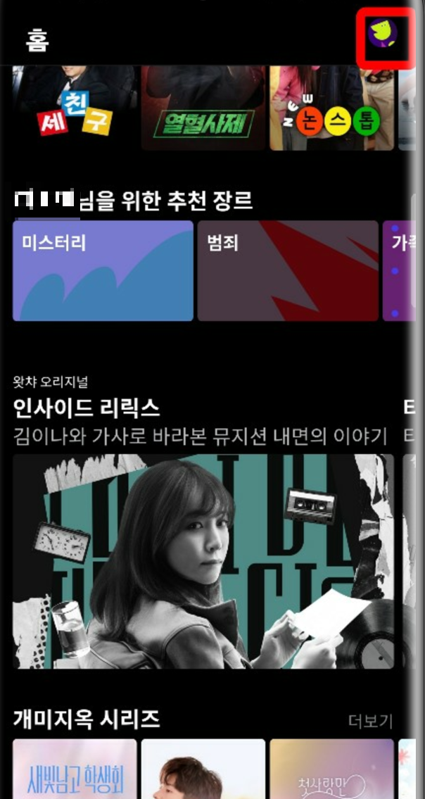 1. 앱 실행 후 화면 우측 상단에 있는 프로필을 눌러주세요.