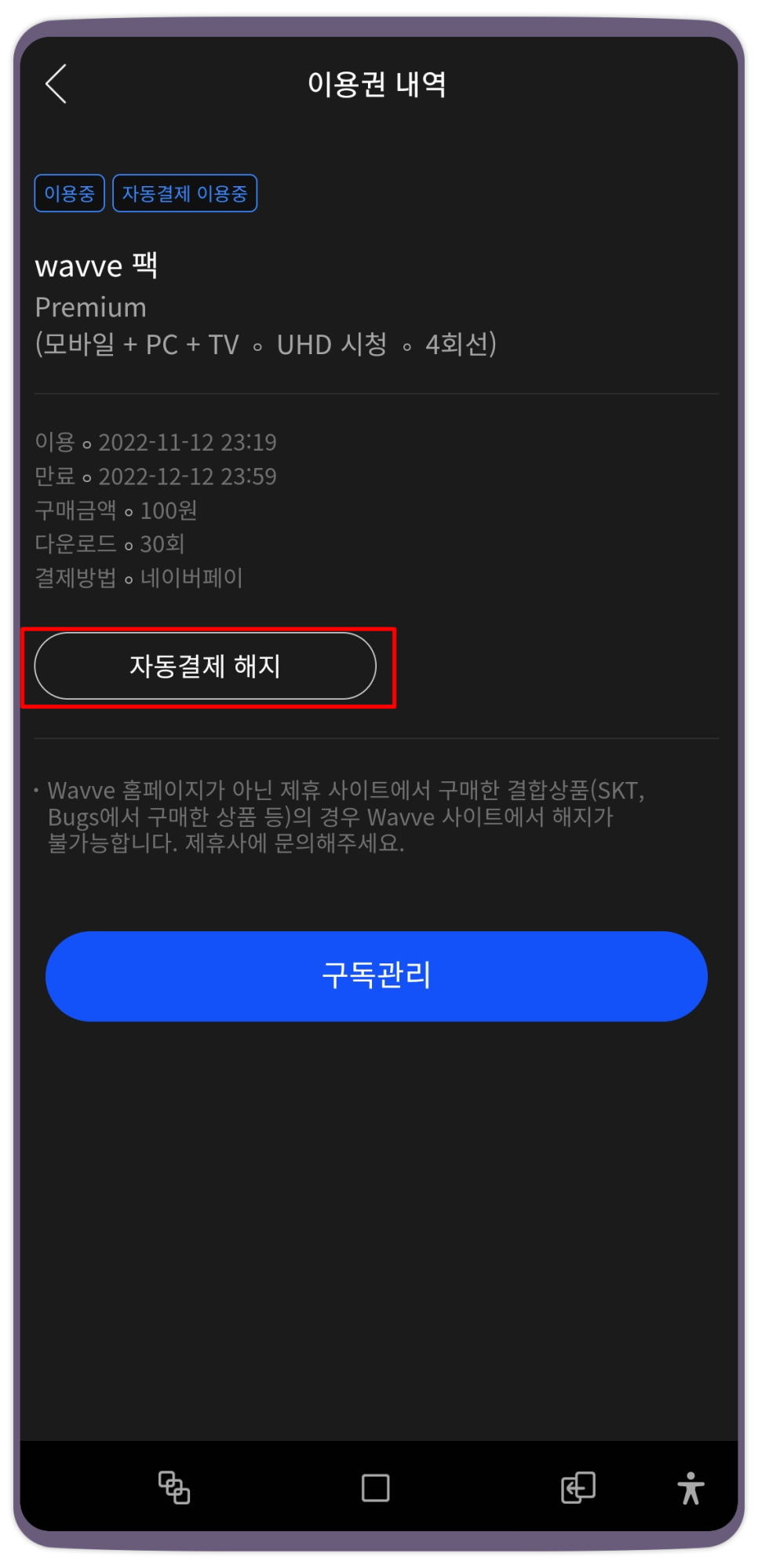 웨이브 해지방법