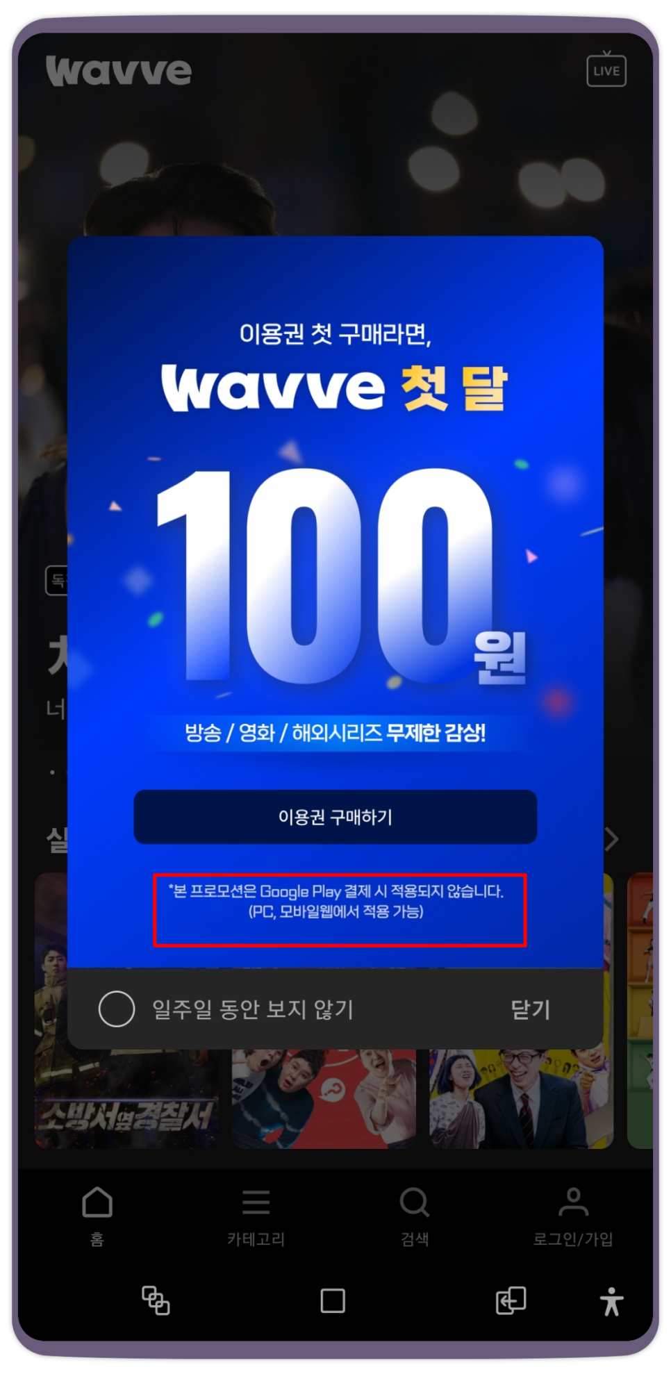 웨이브 첫달 100원 무료가입 방법