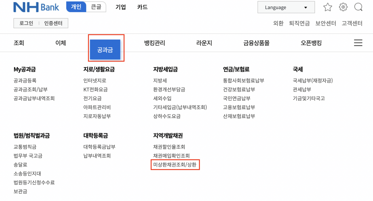 1. 농협은행 자동차 채권 환급금 조회